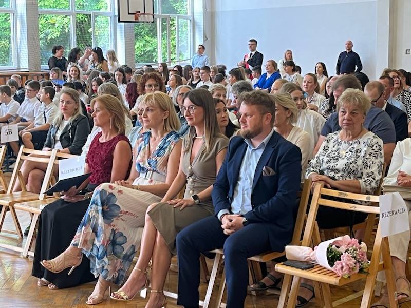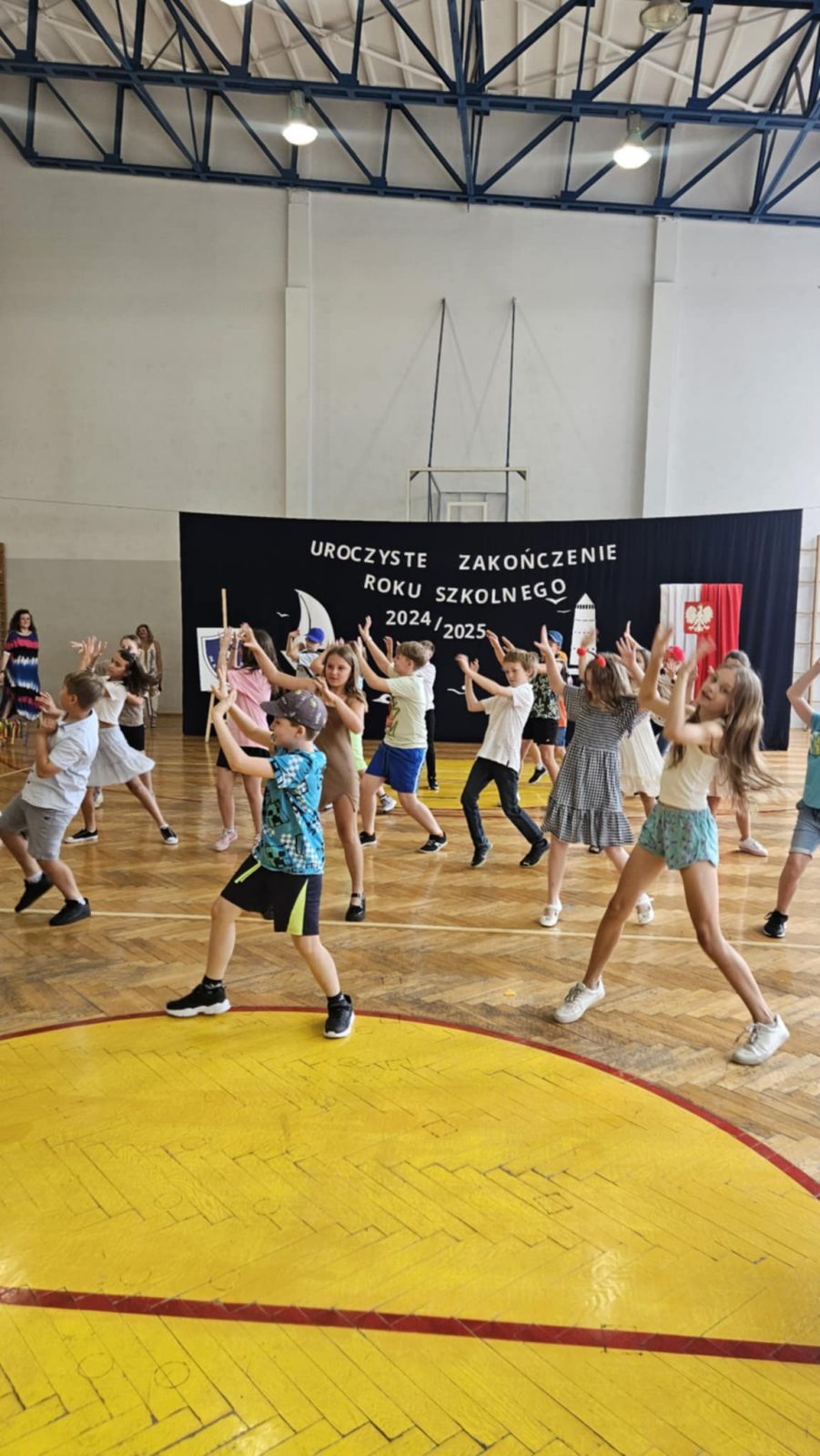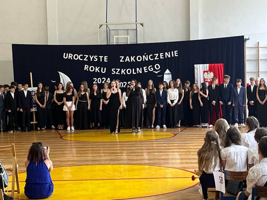 27 czerwca 2025 r. odbyło się uroczyste zakończenie roku szkolnego 2024/2025. Był to wyjątkowy dzień pełen wzruszeń i radości. Szczególne chwile przeżyli uczniowie klas ósmych, dla których był to ostatni dzień w naszej szkole – z dumą odbierali świadectwa z wyróżnieniem i nagrody książkowe. Życzymy im powodzenia w nowych szkołach i wielu sukcesów na kolejnych etapach edukacji. Będziemy Was ciepło wspominać! Uczniowie klas czwartych, śpiewając radośnie „Wakacje! Znowu są wakacje! Na pewno mam rację, wakacje znowu są!” oraz prezentując pełen energii taniec, wprowadzili wszystkich w wakacyjny nastrój i pożegnali mijający rok szkolny z uśmiechem.
